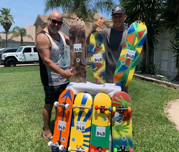 B4B is an all volunteer program and we can only do this with the help of our community. We take any used skateboards and then we completely refurbish these boards so they can be delivered to our local youth. We take each board and strip , sand and paint each one. Then the boards are equipped with new deck traction, trucks and wheels so they are as good and safe as a brand new board and ready to be cherished by a lucky recipient. Your donations make this possible. Whether it is an old board you have laying around that we can re-purpose or a cash donation so we can complete the skateboard build we can not do this without a giving community.